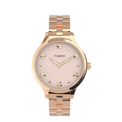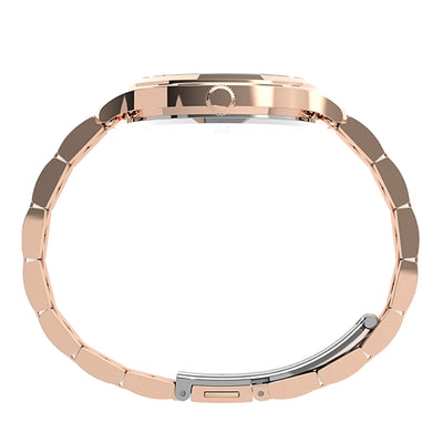 Sweet and subtle florals have bloomed across the pink dial of our stunning Peyton collection. The delicate, raised markers add a level of sophistication and femininity to this timepiece, while a polished, rose gold-tone, stainless-steel bracelet is the reason this watch is one of our top picks this season.