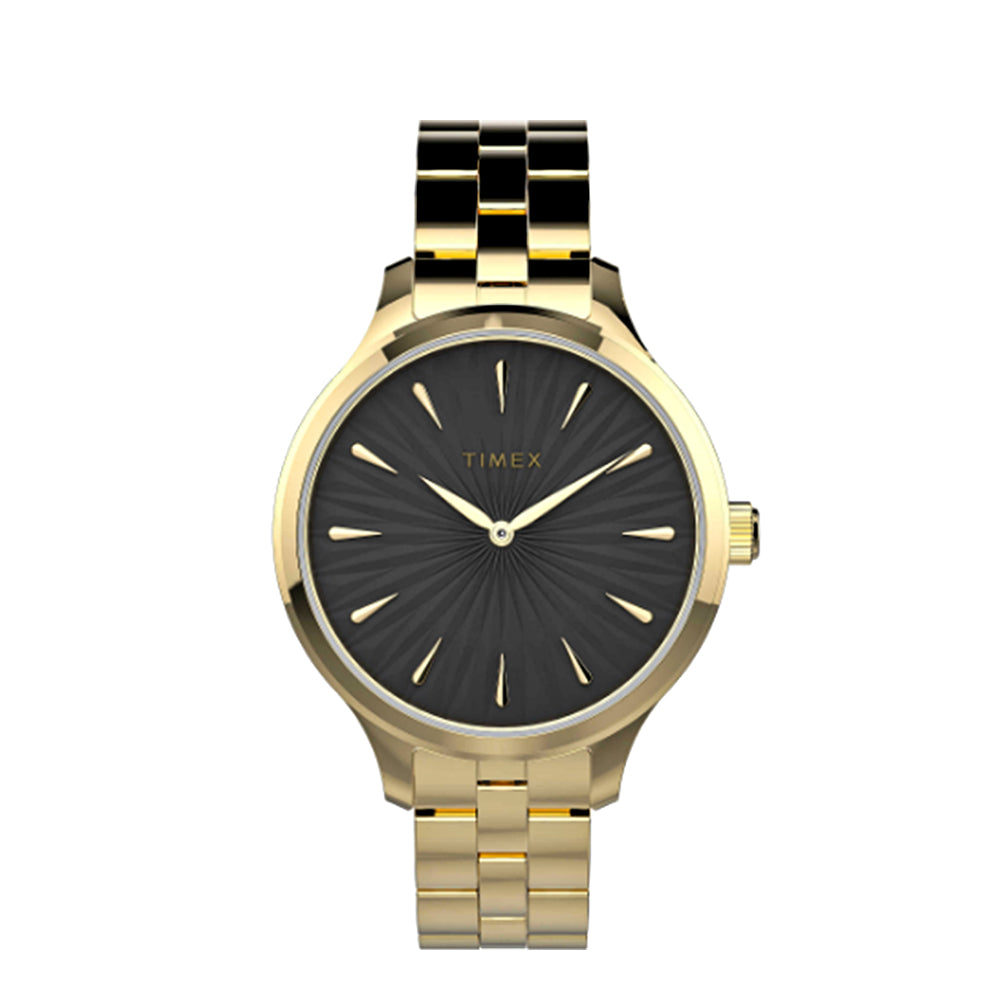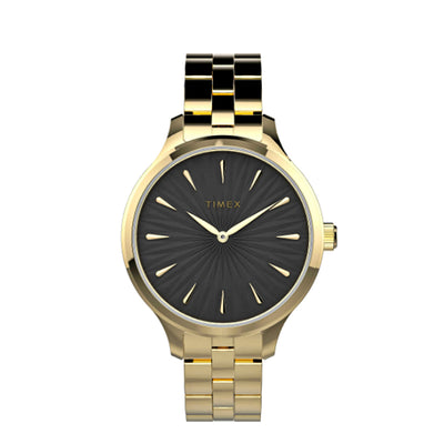 Dress up your look with our Peyton collection. We paired elegant embellishments on the black textured dial with a gold-tone bracelet for a sophisticated design that is sure to become one of your wardrobe favorites.