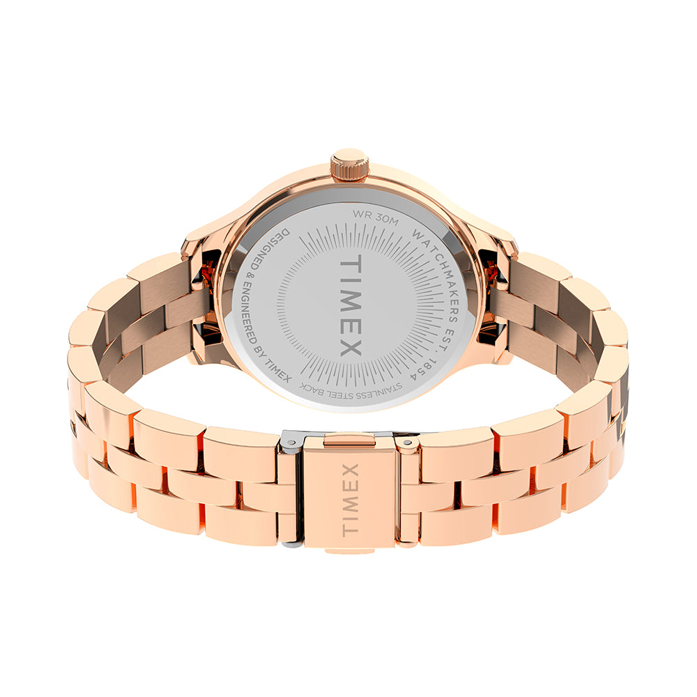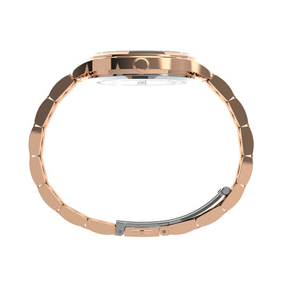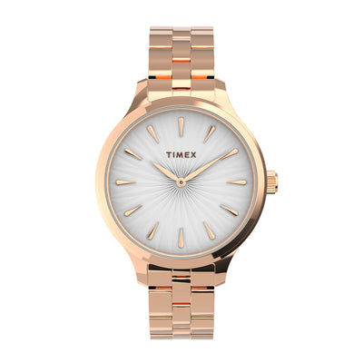 Dress up your look with our peyton collection. we paired elegant embellishments on the white textured dial with a rose gold-tone bracelet for a sophisticated design that is sure to become one of your wardrobe favorites.