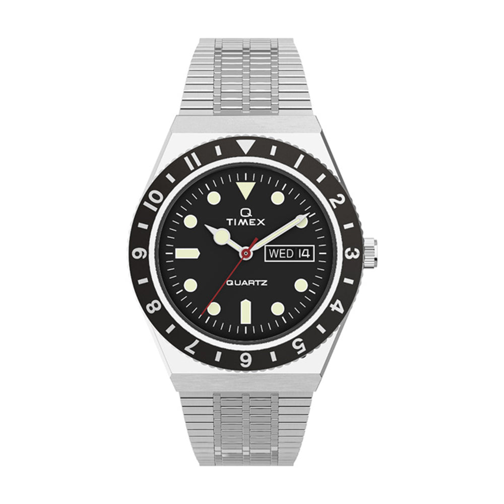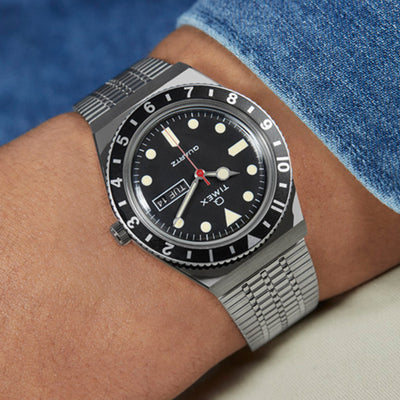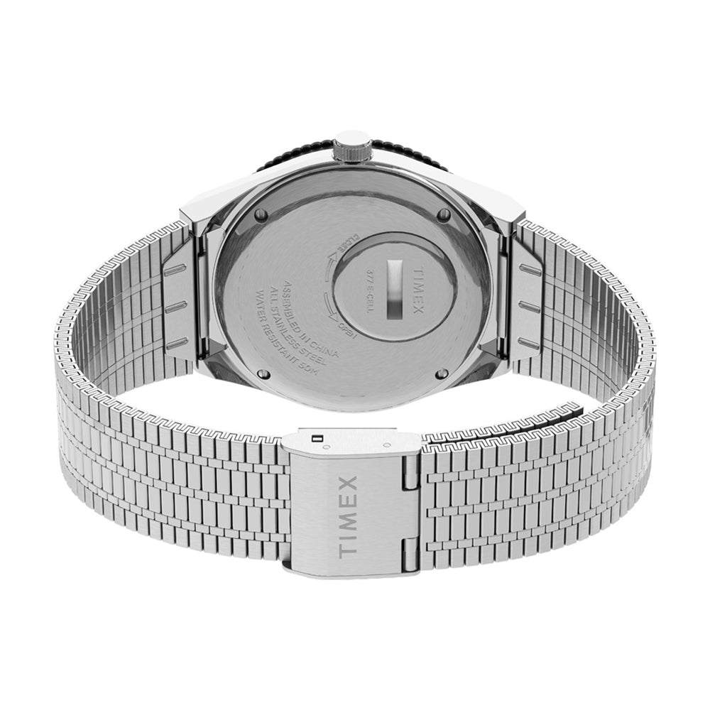 First released in the 1970s, our original Q Timex gave a new generation a modern watch with quartz technology. A natural evolution of our much-loved Q Timex 1979 Reissue watch, this adds new color to the iconic features of the original ? a black rotating bezel, woven stainless-steel bracelet, functional battery hatch and domed acrylic crystal. It's everything you already loved, and then some.