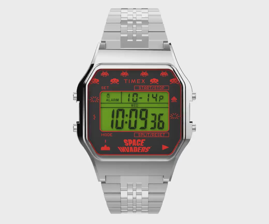 For those of you who didn't grow up in the seventies, spending their weekends raiding arcades; SPACE INVADERS is one of the most iconic games ever and we are bringing it back. TAITO's SPACE INVADERS won the hearts of billions of players worldwide since its launch in 1978. The invasion reached street culture fashion and art. Timex T80 x SPACE INVADERS celebrates the meeting of two icons and we come in peace. Our iconic T80 with the pixelated alien "Invaders" and that unforgettable electronic soundtrack. See you at the arcade.