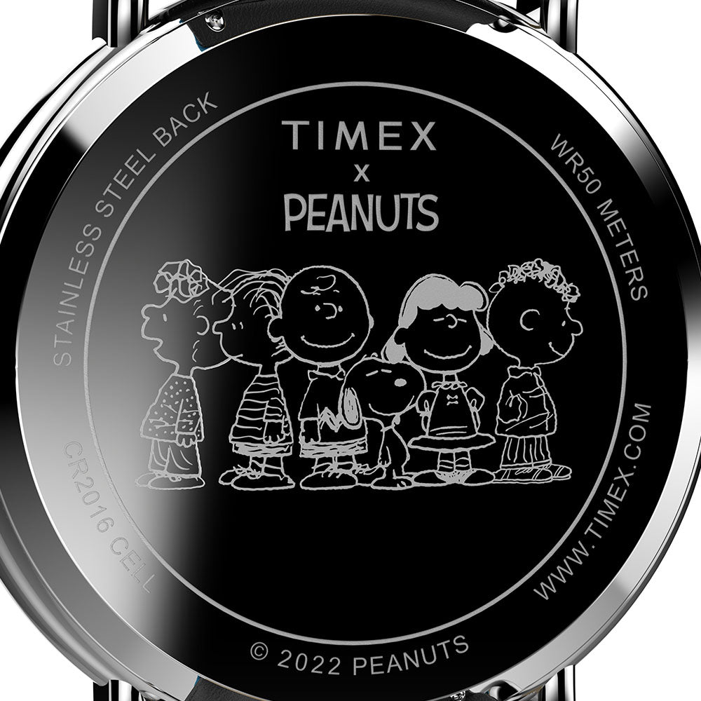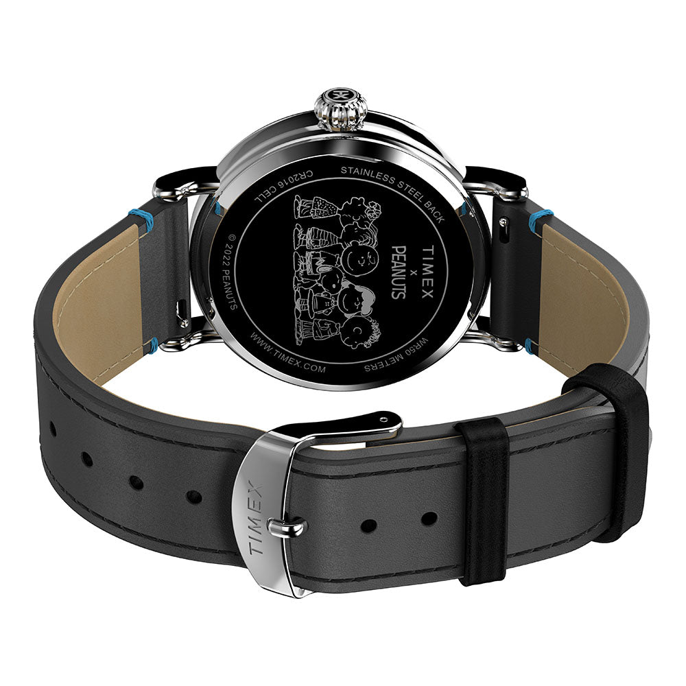 It?s time to head back to school! feel confident this year and every year with our favorite peanuts beagle on your wrist, featuring our versatile timex standard. a cheerful blue dial displays snoopy graphics, while a black leather strap, indigloâ® backlight, and 30-meter water resistant rating are just the features you need to kiss that butterflies-in-your-stomach feeling goodbye.