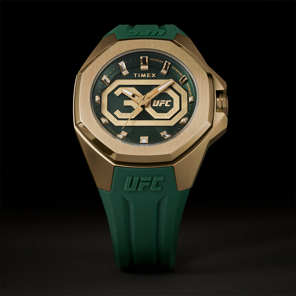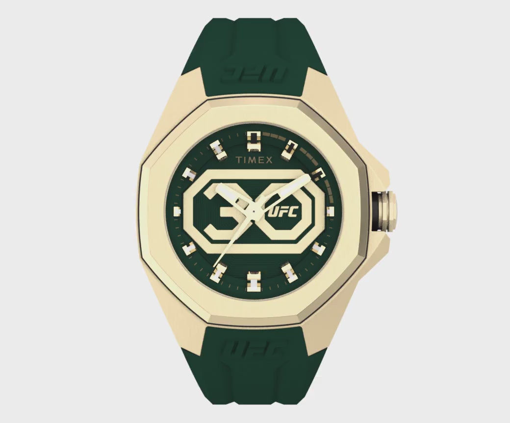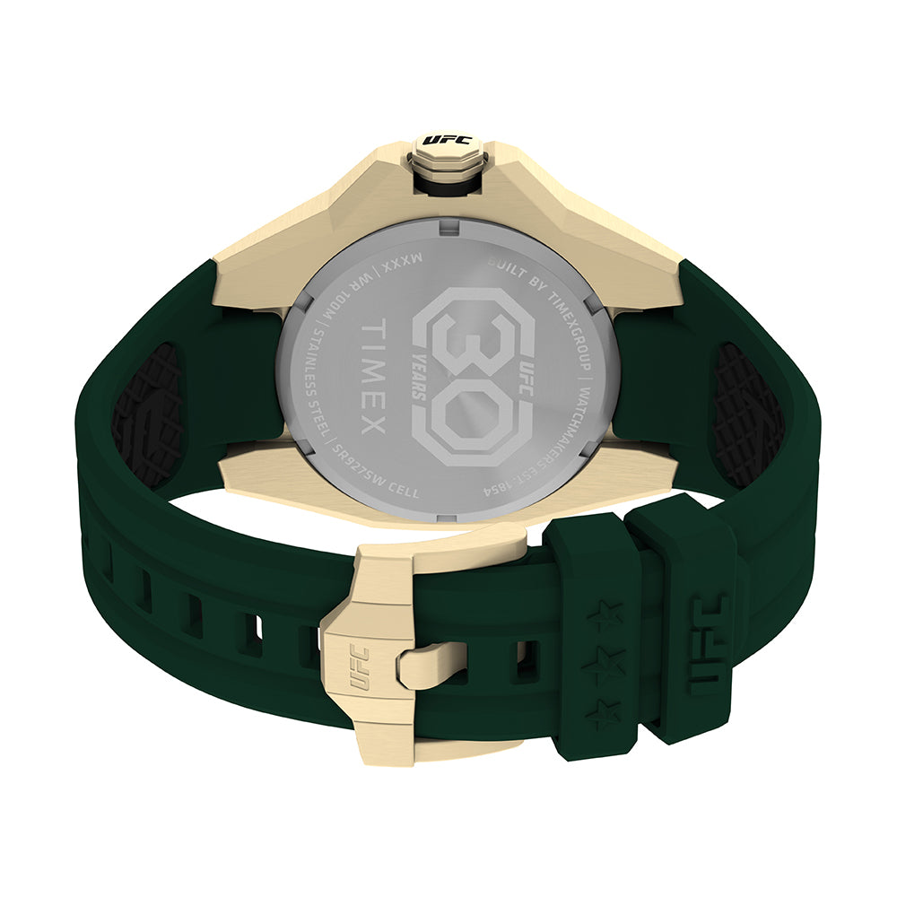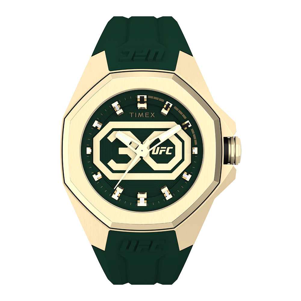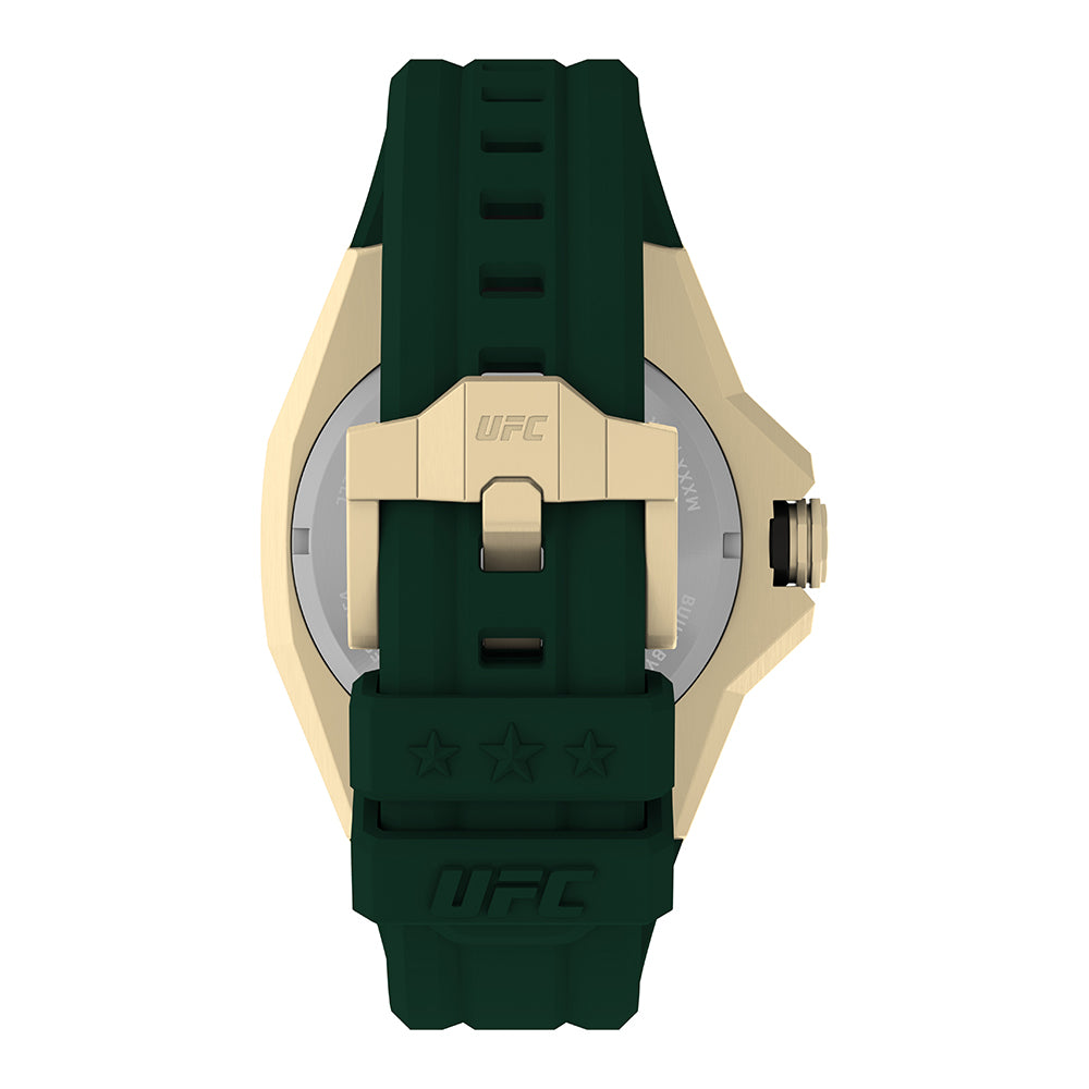 The UFC Pro 30th boasts an impressive 45mm case and a green dial that proudly reps the UFC legacy with a prominent gold-tone 30th anniversary logo. The stainless-steel bezel and crown are expertly crafted to bring the thrill of the octagon to your wrist, while its rugged durability is accentuated by a comfortable green silicone strap. It's also built with a gold-tone stainless-steel case that offers 100m of water resistance. So, whether you're battling it out in the octagon or exploring the great outdoors, this watch is up to the task.?