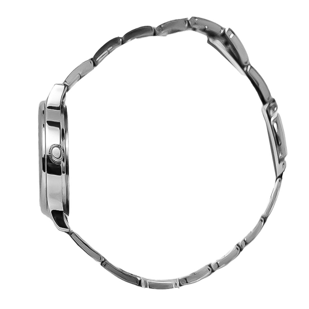 This classic analog watch for ladies features silver case and stainless steel bracelet. mixing arabic and line markers on a silver dial provides a trendy display of the time. over-all, the stunning silver accents creates a perfect balance of elegance and simplicity, that will help exude confidence to every woman wearing it.