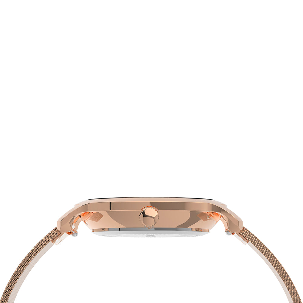 A minimalist wristwatch for lovers of contemporary style, Transcend is a staple collection known for its thin case profile and classically feminine aesthetic. An embossed dial appears in an extraordinary midnight-black gradient, while a unique handset and crystal indices rival the cosmos itself. At 31mm in diameter, the clean case is enhanced by a rose gold-tone, stainless-steel bracelet with quick-release spring bars, offering the chance to create a personalized look that mirrors your unique inner-universe.