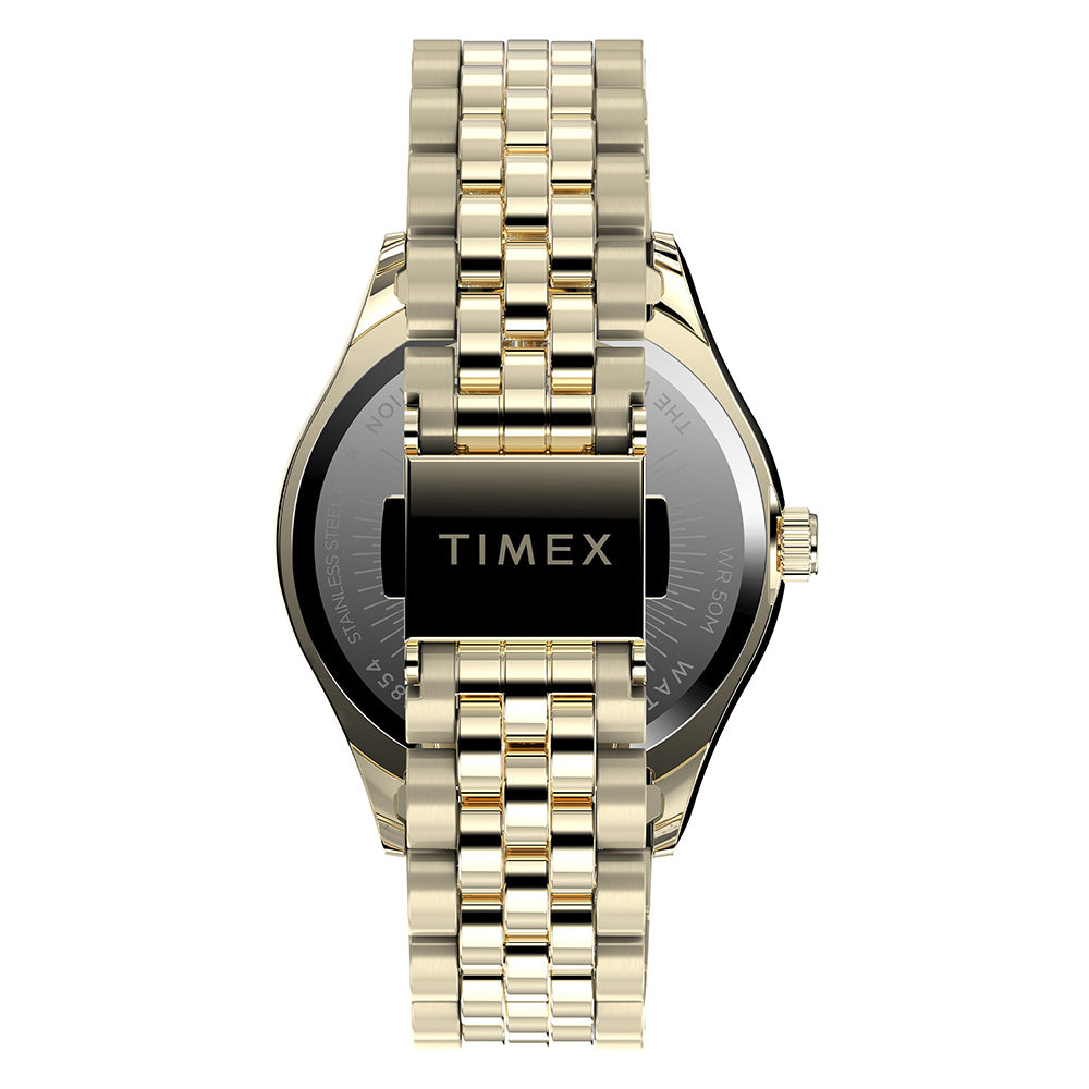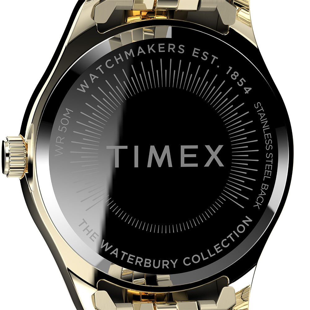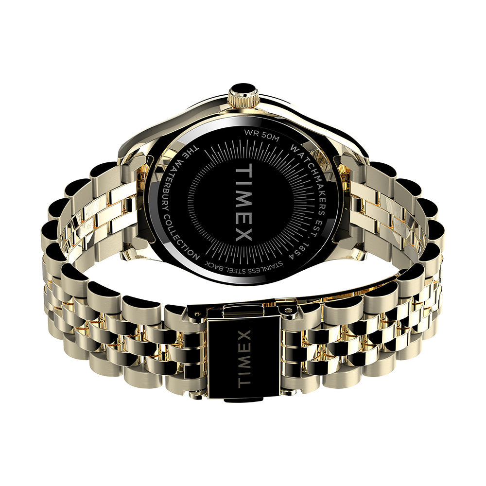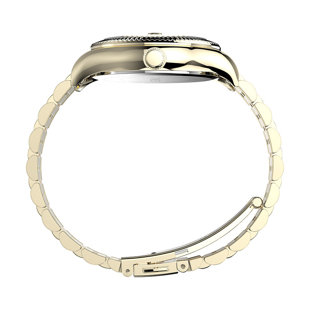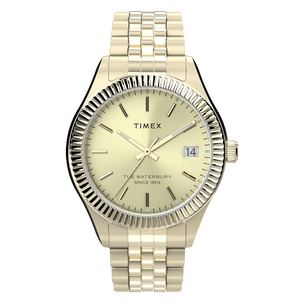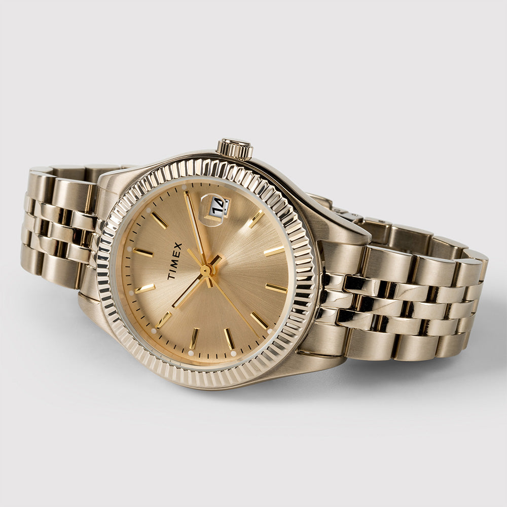 There's strength in tradition. We're honoring our 1854 roots as the Waterbury Clock Company and the strong women who created our earliest timepieces. A testament to our commitment to craftsmanship and honoring our original watchmakers, this watch with its pale gold-tone stainless steel case and bracelet, gold-tone dial and an elegant fluted stainless steel bezel is well-suited for everyday wear.