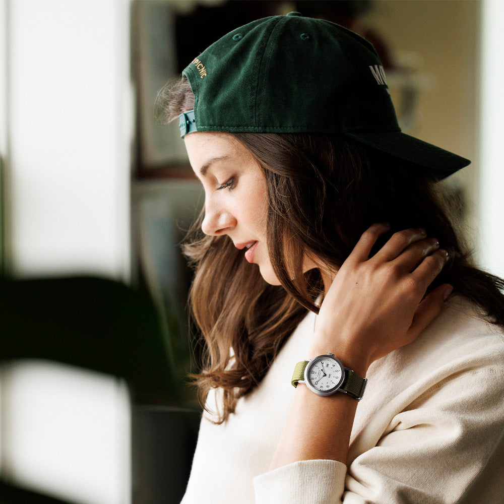 We’re bringing a fresh burst of energy to our beloved Weekender with elevated details, like a sleek new 37mm case, a new crown design, and a slip-thru strap design that makes it easy to swap out the fabric strap for one in another color or print. It’s equipped with luminous hands and our INDIGLO® backlight, and on the white dial, you’ll find a date window complete with a magnifier for enhanced viewing, both 12- and 24-hour time indexes, and the iconic “we.” logo of the Timex Weekender as a reminder that any boring old day can become unforgettable if it’s spent with our favorite people.