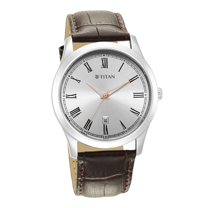 When it comes to brown and silver, there's something very appealing about the vintage-like feel that they give off. The silver face, stainless steel case, and dark-brown leather band all work together to create the perfect timepiece for the well-dressed gentleman!