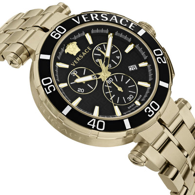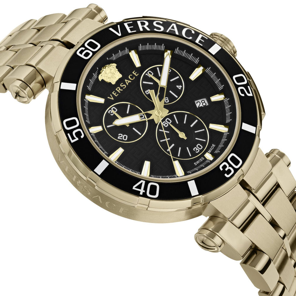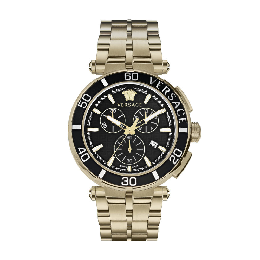 The Versace mens watch VE3L00522 is a sporty companion from the model series Greca Chrono 45mm. A perfect choice if you are looking for a timepiece with a vivid look.