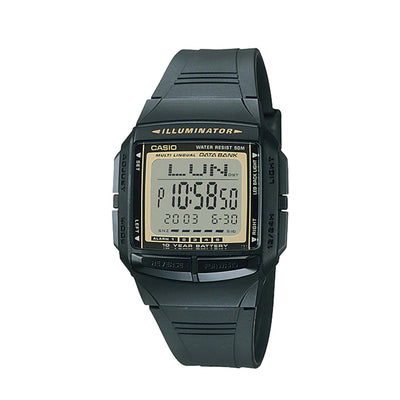 Multi-lingual? This 30-page databank shows you the day of the week in Spanish, French, German, up to 13 languages, right on your wrist. And it all operates with a 10-year battery.