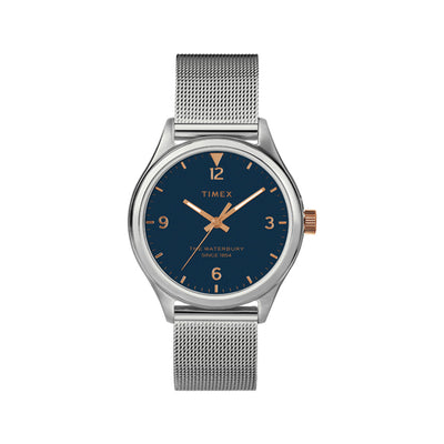 There is strength in tradition. This collection provides an update to a true classic — a timepiece honoring our roots with ageless style. A testament to our commitment to craftsmanship and watchmaking, the Waterbury Women’s Traditional is well-suited for everyday wear with its polished stainless steel case, navy dial with rose gold-tone accents and silver-tone mesh band.