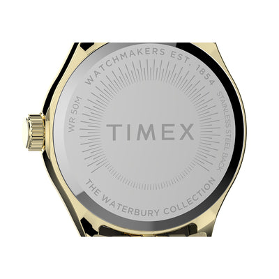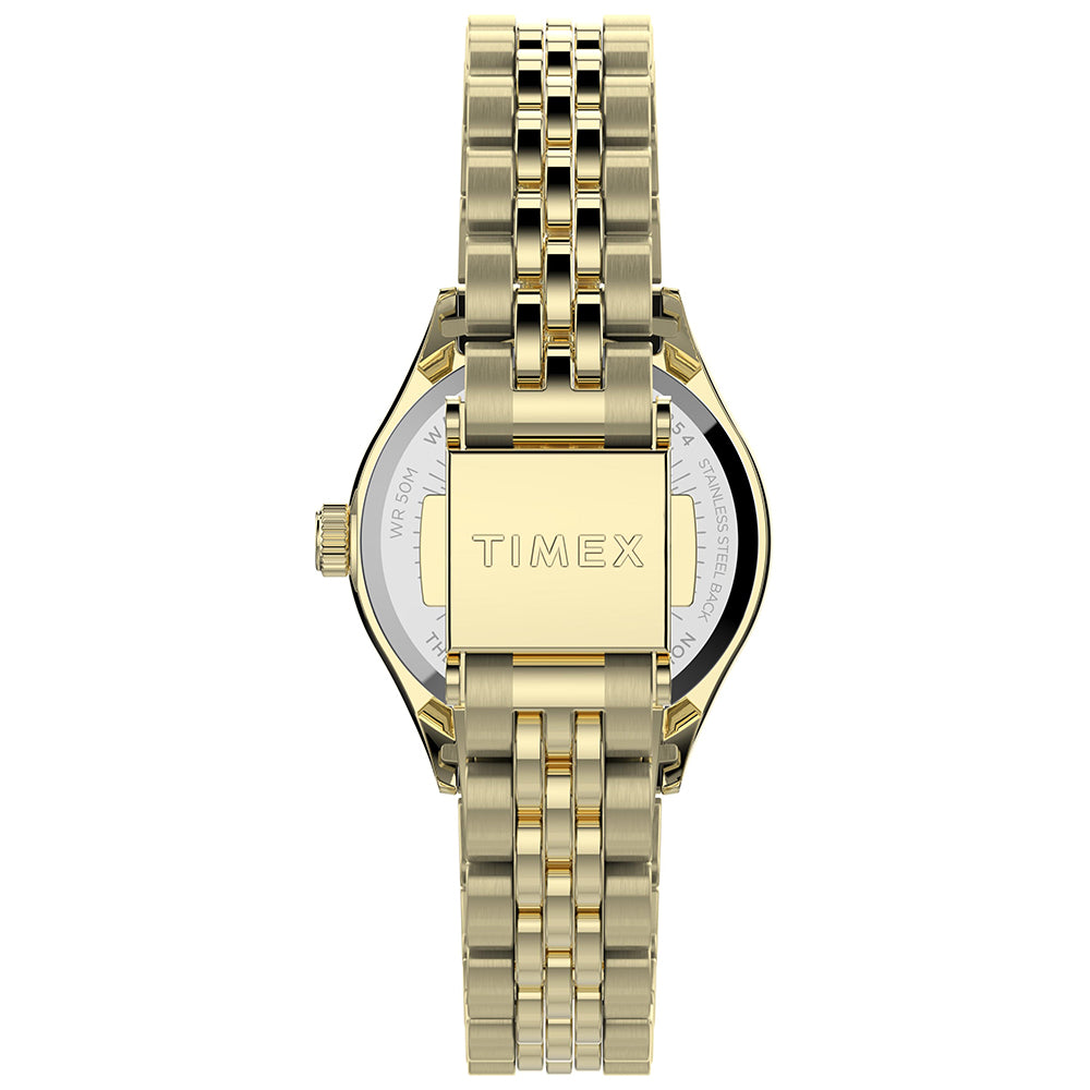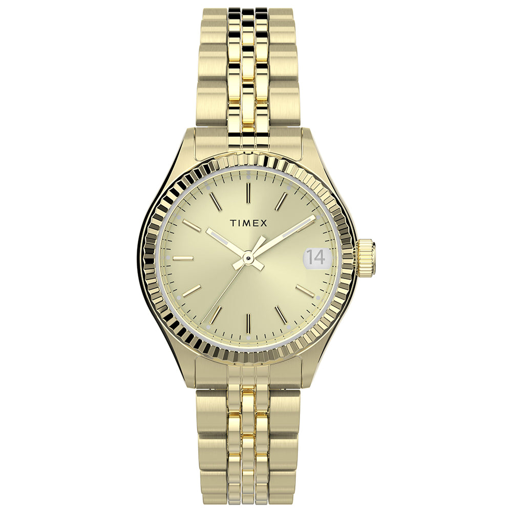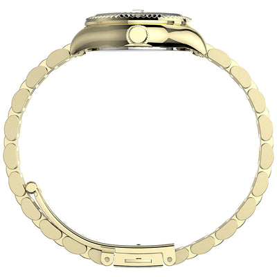 There’s strength in tradition. We’re honoring our 1854 roots as the Waterbury Clock Company and the strong women who created our earliest timepieces. A testament to our commitment to craftsmanship and honoring our original watchmakers, this watch with its petite pale gold-tone stainless steel case and bracelet, gold-tone dial and an elegant fluted stainless steel bezel is well-suited for everyday wear.