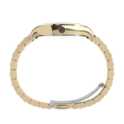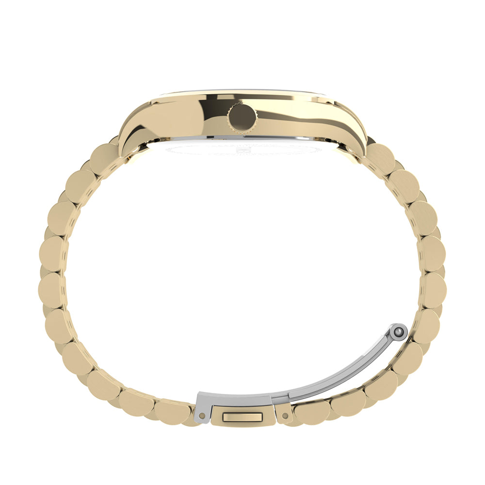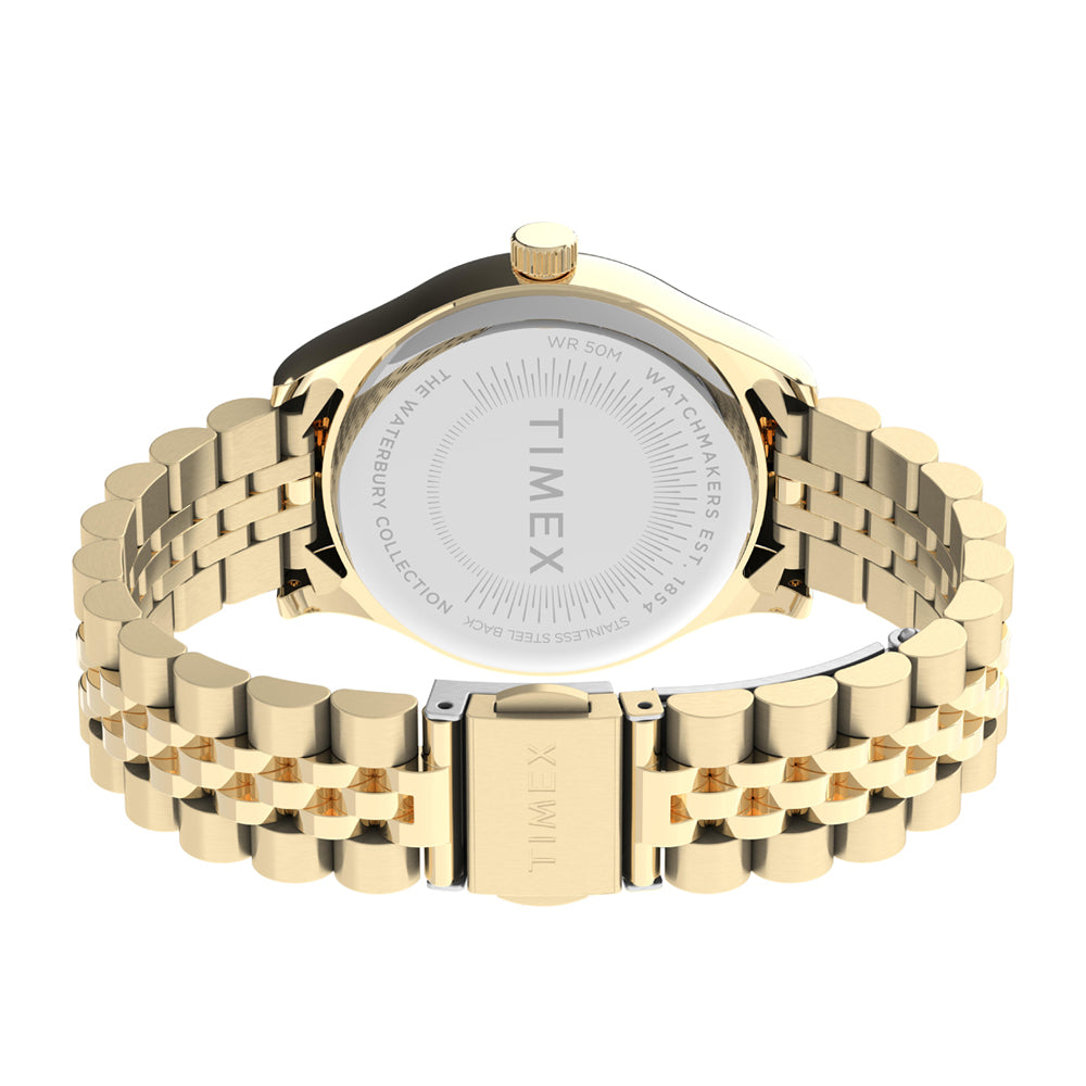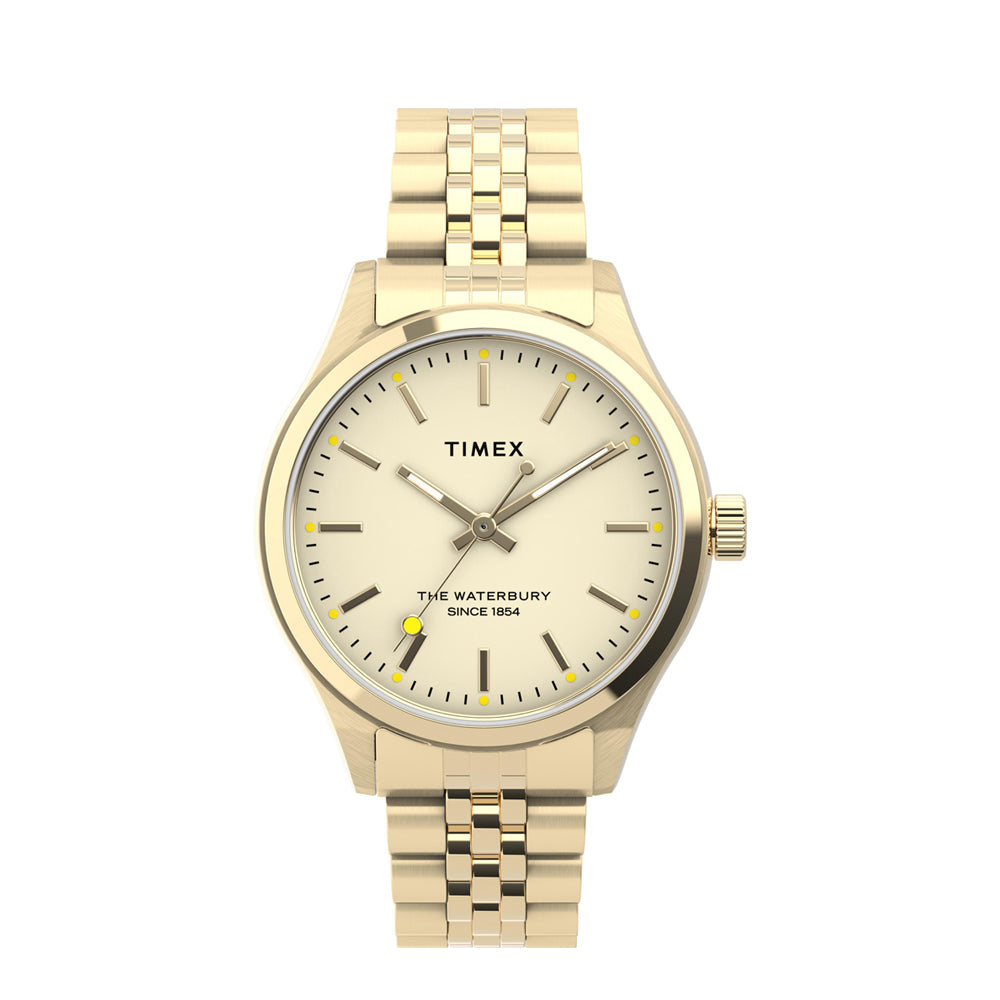 During the day, it’s our well-crafted Waterbury gold-tone stainless steel bracelet watch—steeped in generations of watchmaking tradition. But this watch is more fun when the lights go down. Press the crown to illuminate our yellow neon-colored INDIGLO® backlight and reveal your sassier side with a secret lightning bolt icon on the dial.