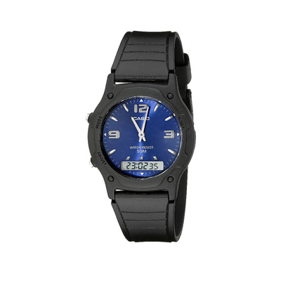 The timeless style of an analog watch, combined with the functionality of a digital watch. This ana-digi combination allows you to see up to 2 times or the date with day of the week. With the added features of an alarm, stopwatch and hourly time signal, youƒ??ll never lose track of time. Black Casual Classic Watch with Resin Band. Features Dual Time, 50 Meter Water Resistance and Daily Alarm.