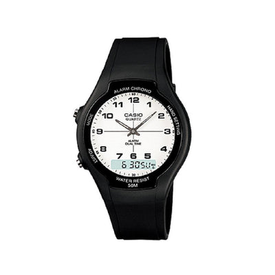 Get the Casio AW-90H-2B Analog Digital Watch and accessorize your outfit. The resin band, along with resin case and bezel, create the durable as well as the stylish structure of this Casio men's watch.