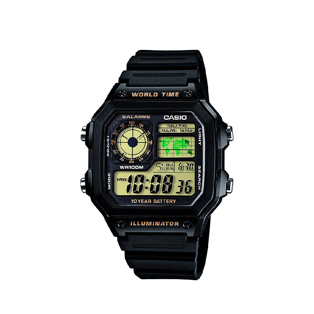 Classic ƒ?? Black. Black resin band digital watch with a black & neutral face.